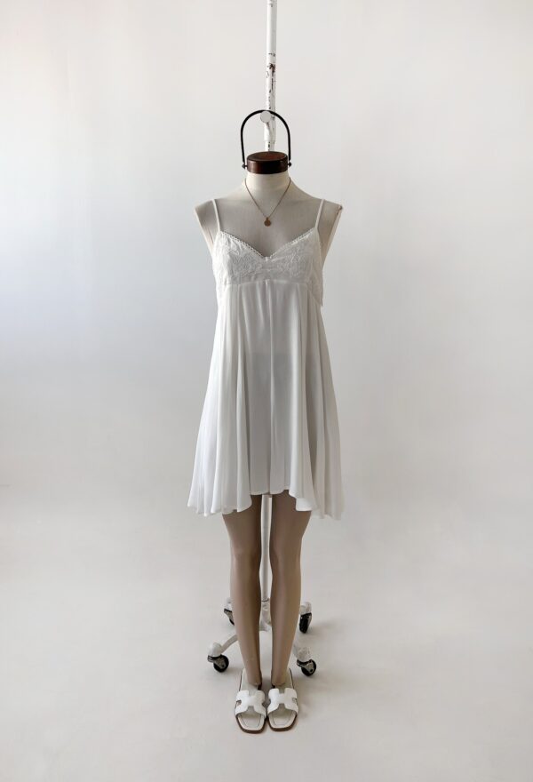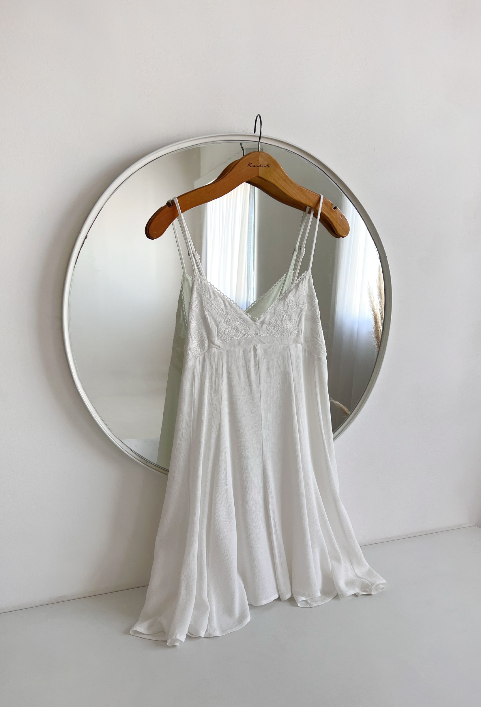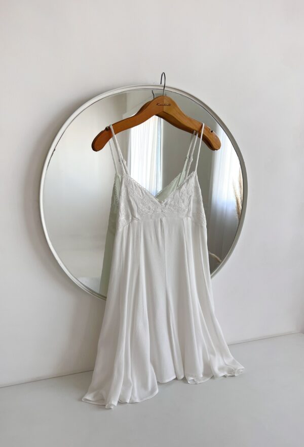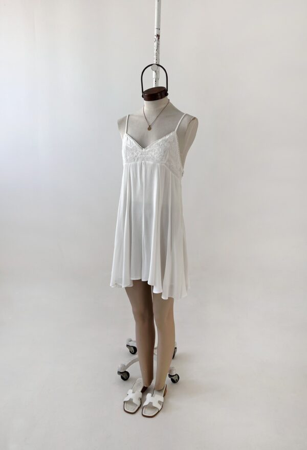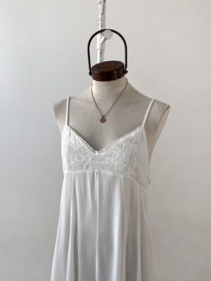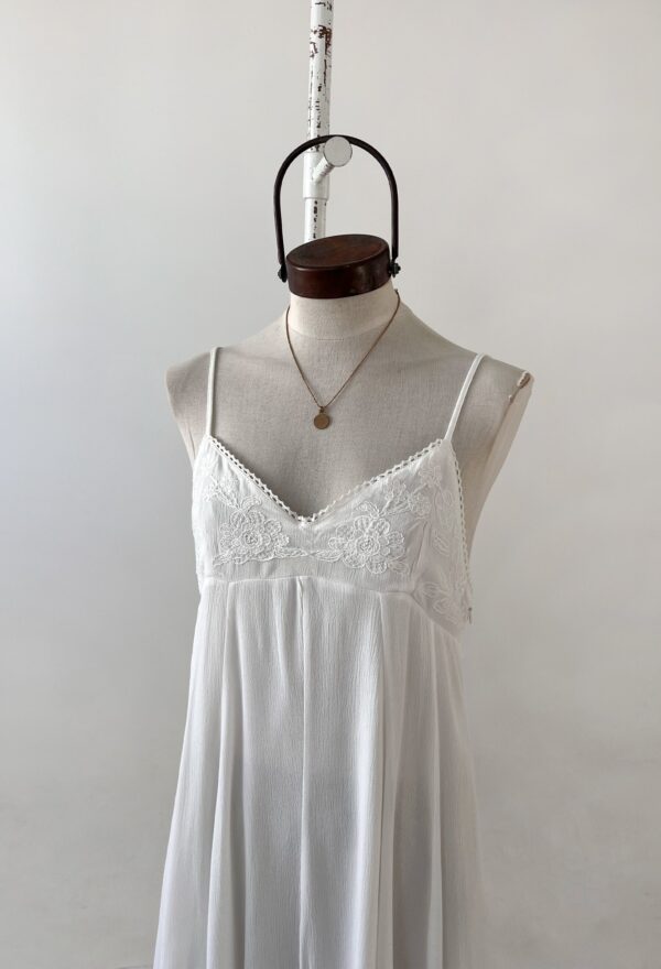 VESTIDO ESTILO LENCERO CON BORDADO Y DETALLE DE PUNTILLA EN ESCOTE